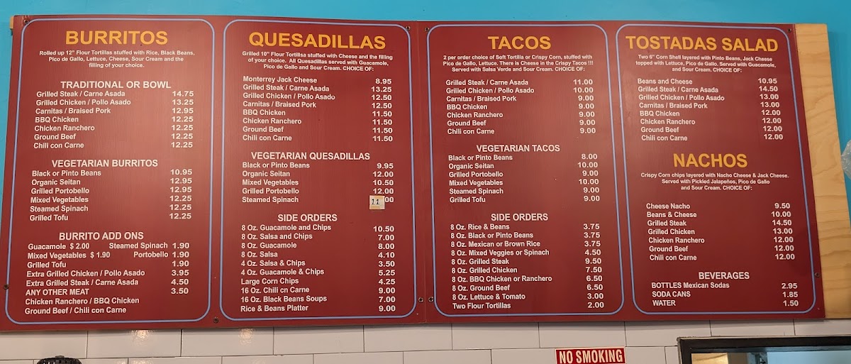 “ I come here almost once a week at this point. I highly recommend the burrito, I typically get the carne asada. The beans are fantastic and you can really taste the grill on the steak. All the ratios are perfect in every bite, it never fails to hit. The quesadillas are also very good. Every order comes with chips and salsa which is amazing. 10/10 I’ll see you guys next week (maybe this week again too, we’ll see). ”